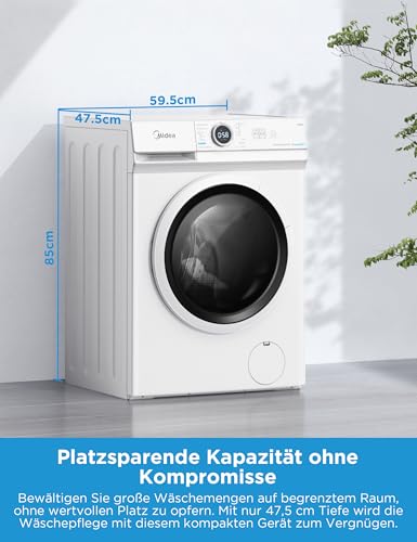 Midea MF10EW80BA10 Waschmaschine / 8kg / 1400 U/Min/EEK A-10%/Inverter Quattro Motor/Dampffunktion/Grosse Trommel/Nachlegefunktion/Kindersicherung/AquaStop, Weiß